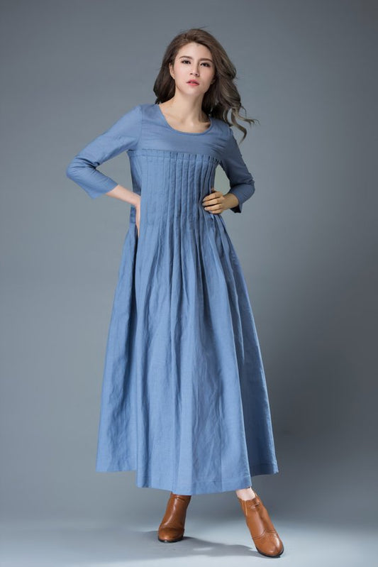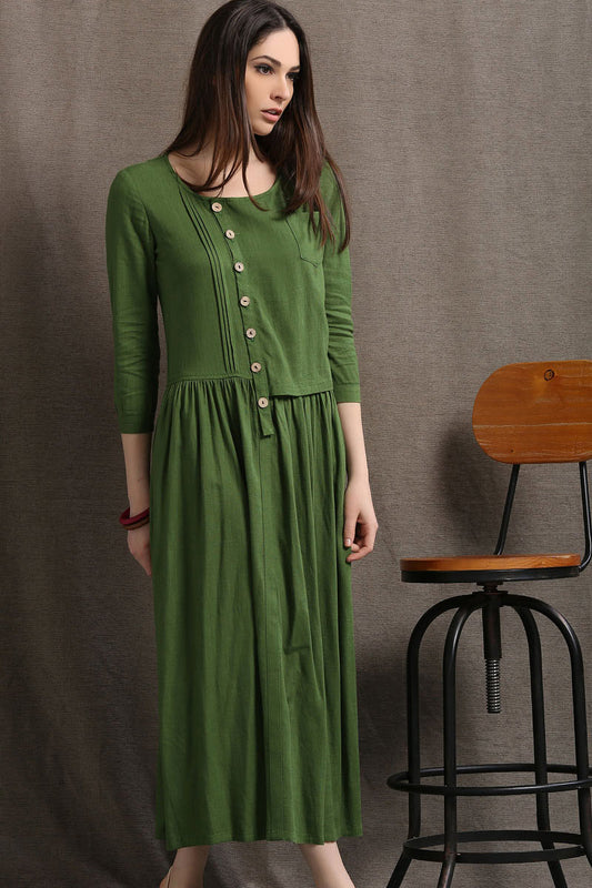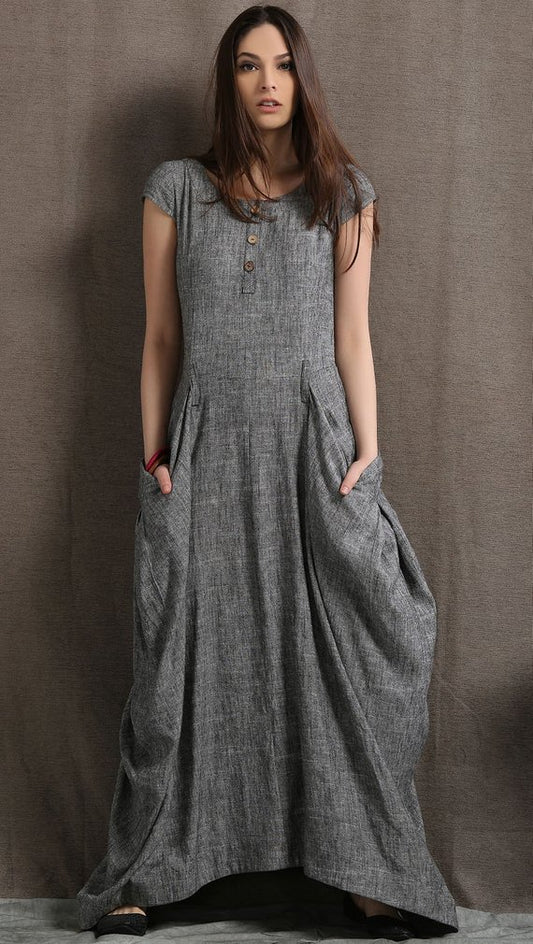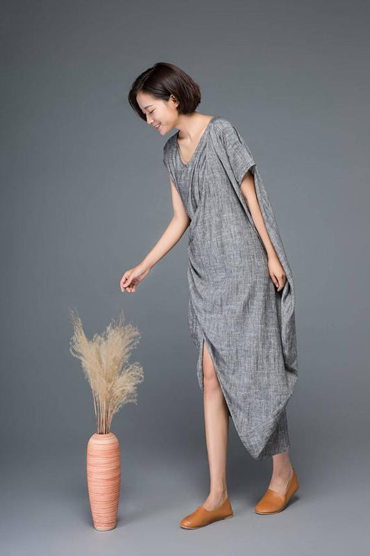 Women Loose fit Linen Short Sleeve Maxi Dress C534#