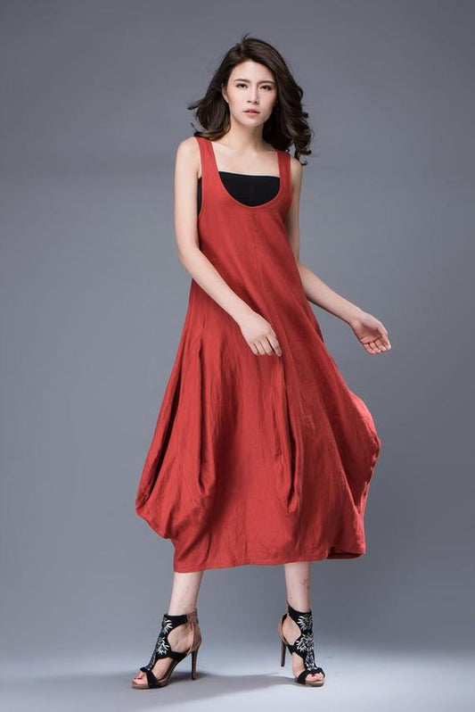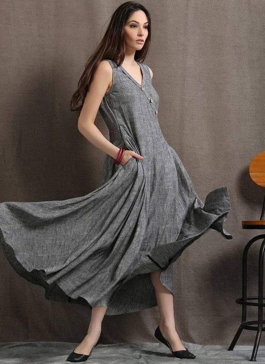 V Neck Loose Sleeveless Maxi Dresses C418#