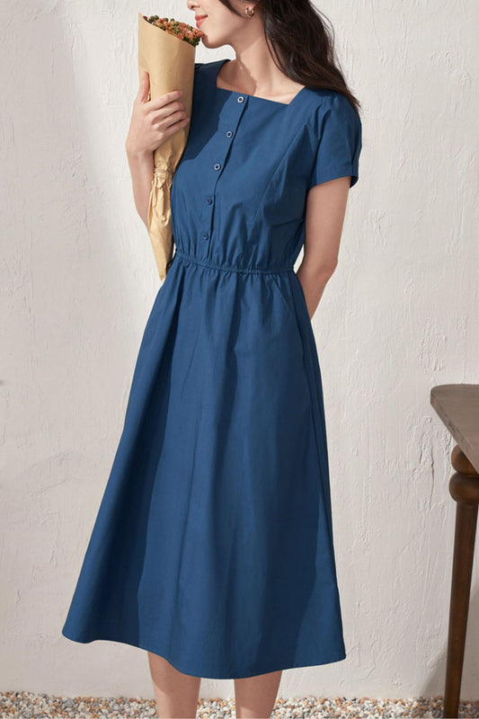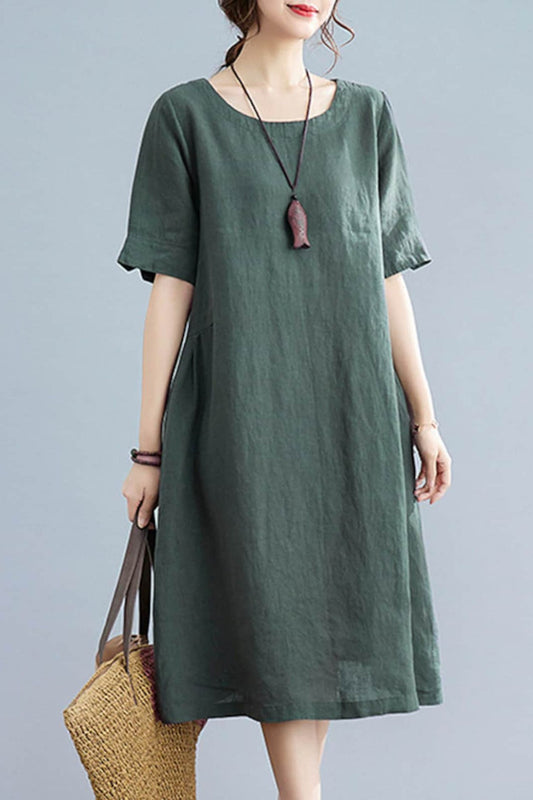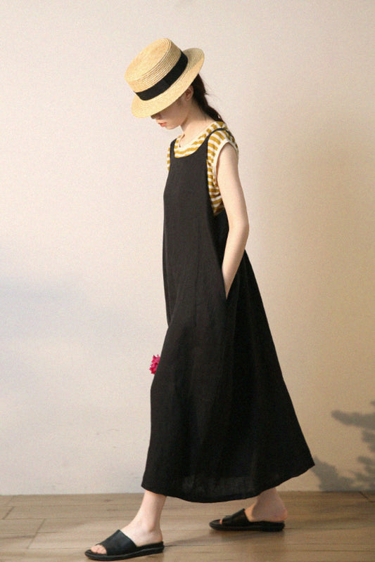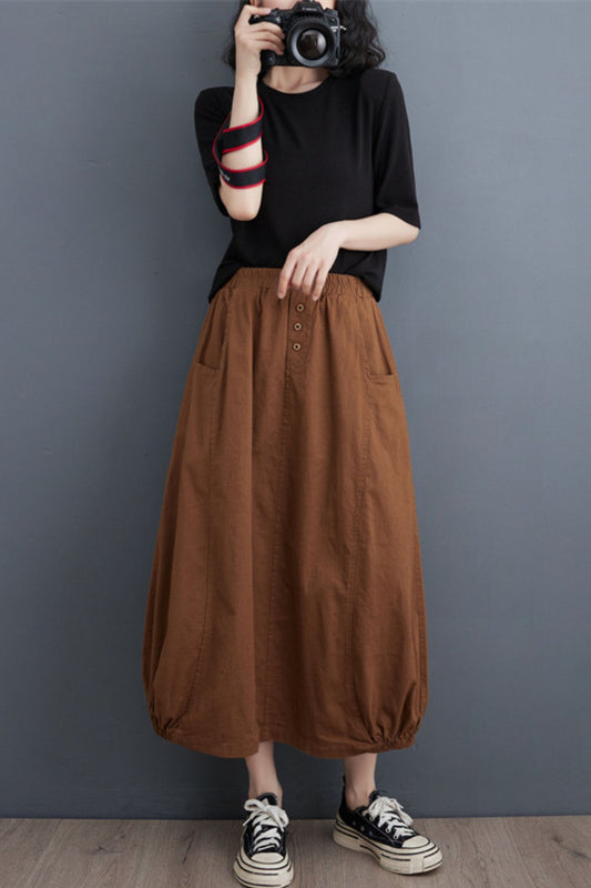 Cotton Linen Women Casual Elastic Waist A-line Skirt TT0020