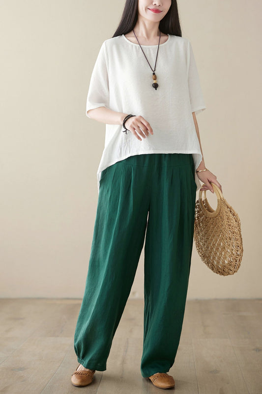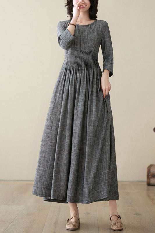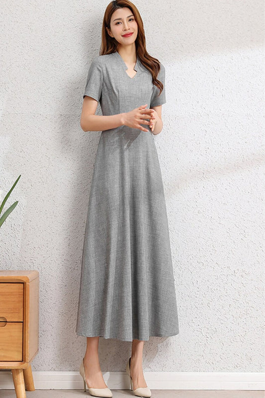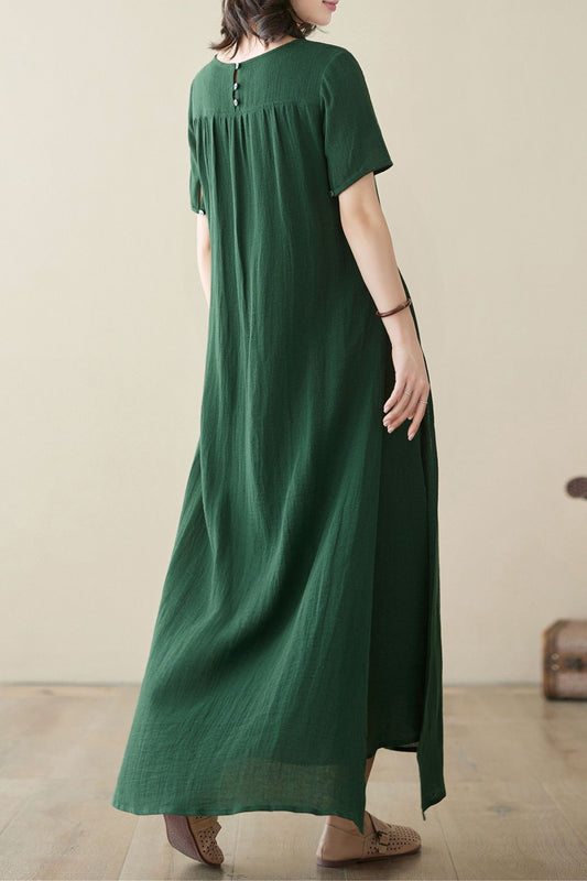 Women Loose fit Linen Short Sleeve Maxi Dress C3949