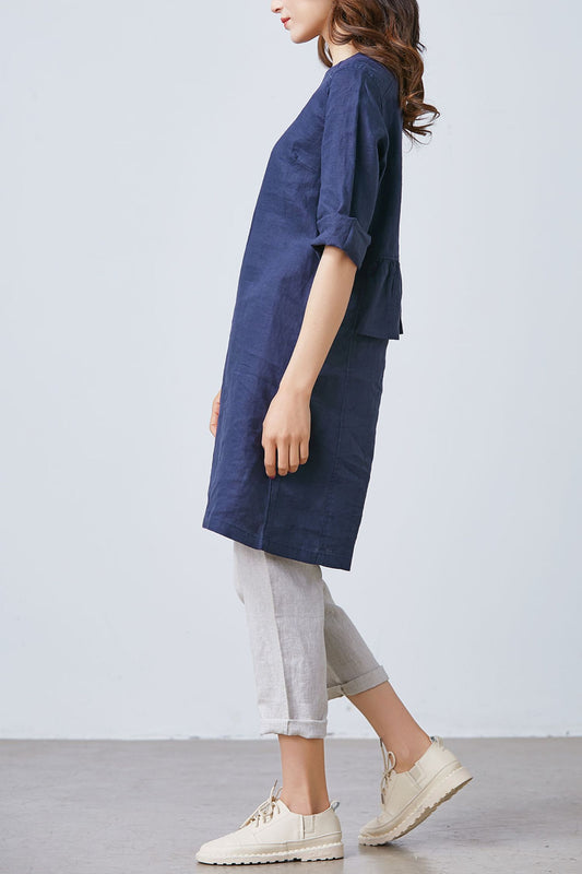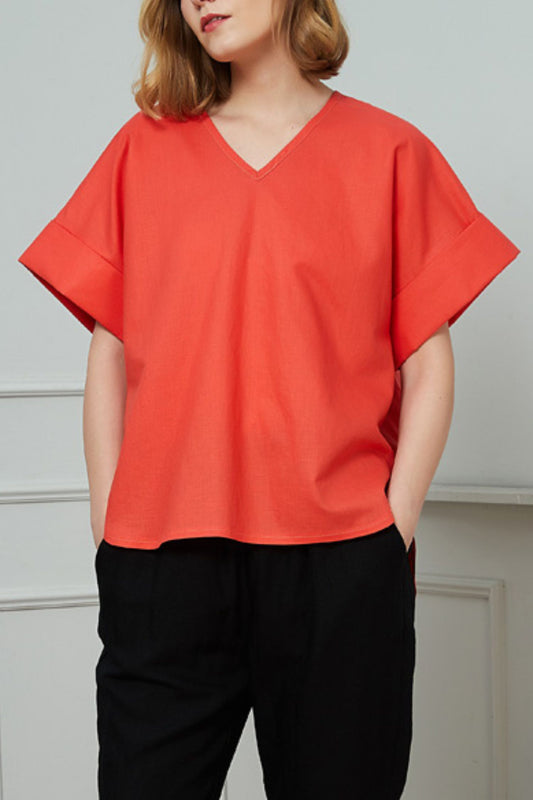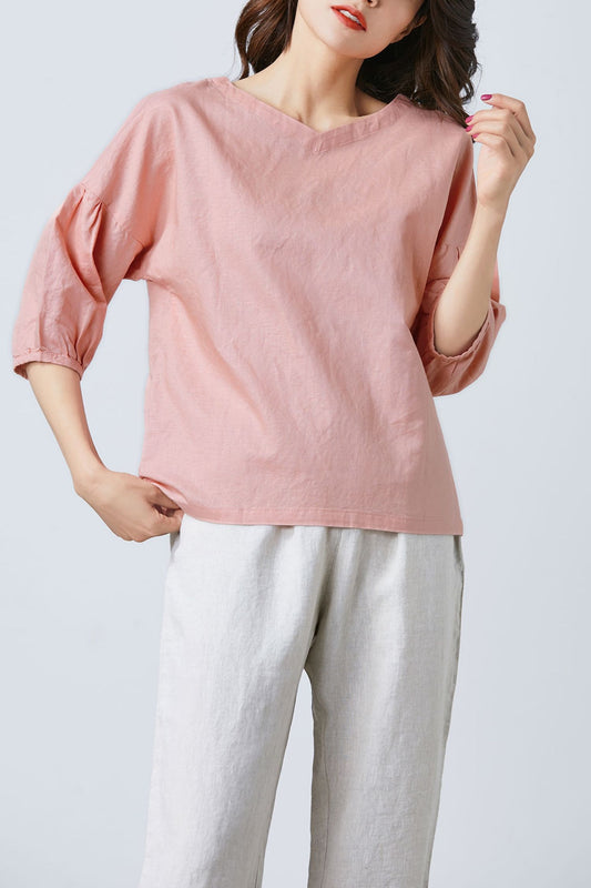 Women Leisure Linen Tops Summer V Neck Blouse C1682