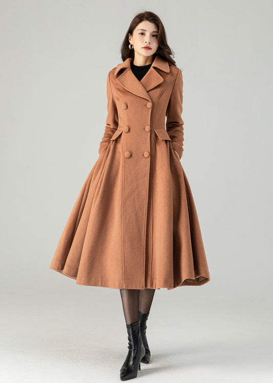 Brown double breasted winter wool coat for women C3619