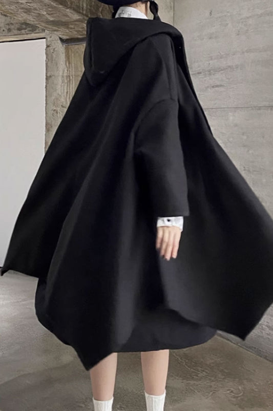 Irregular black winter wool cape coat C3650