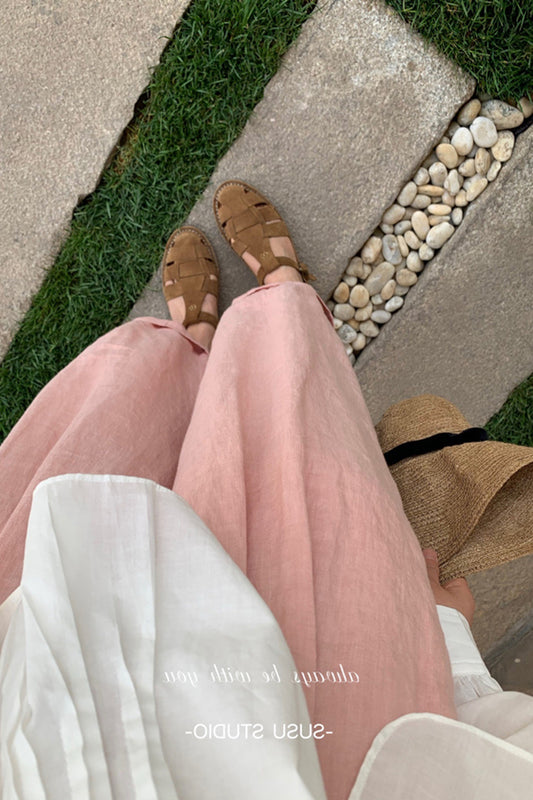 High waisted cotton linen wide leg pants C3469