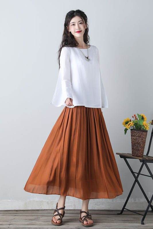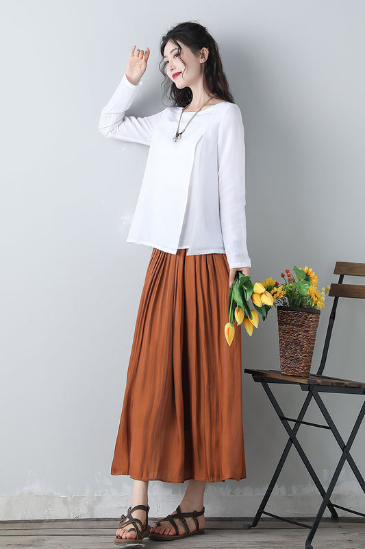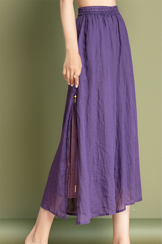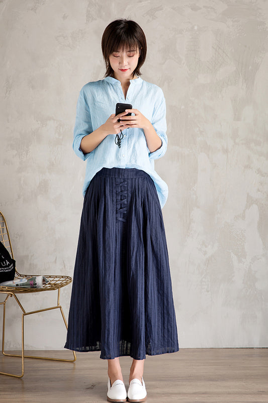 Linen High Waist Large Swing Art Long Skirt C3472