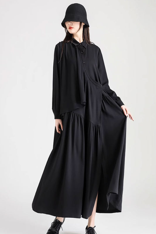 black long sleeves shirt dress women autumn C3501