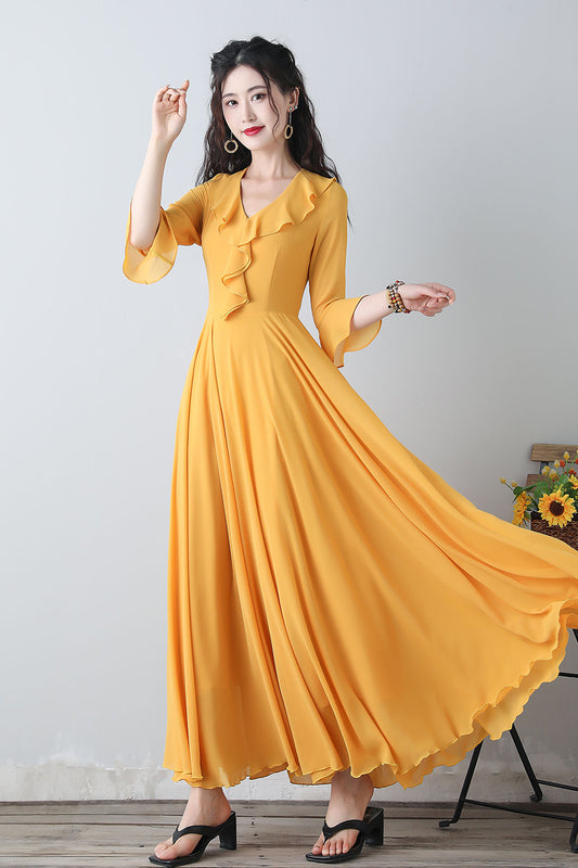 Yellow chiffon fit and flare dress C3457