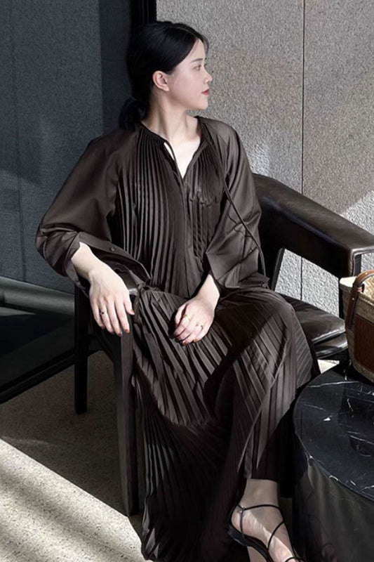 plus size dark brown long sleeves dress women C3500