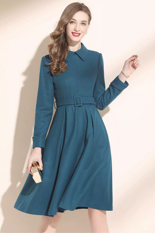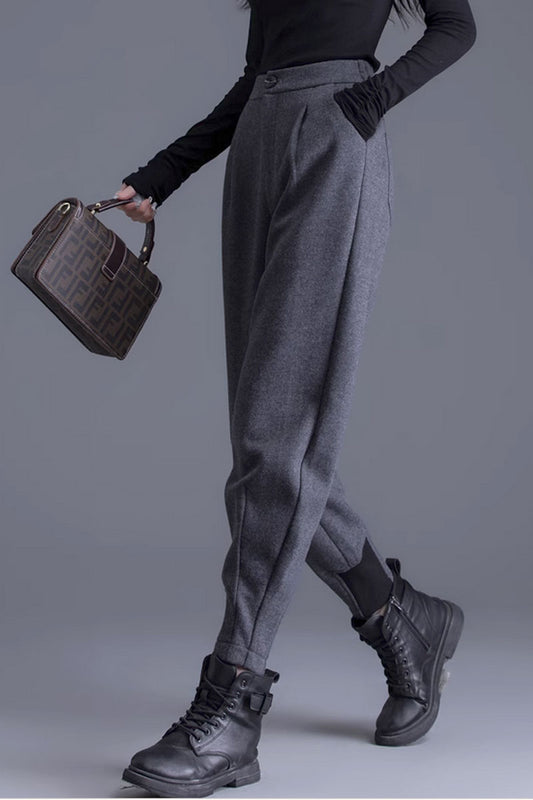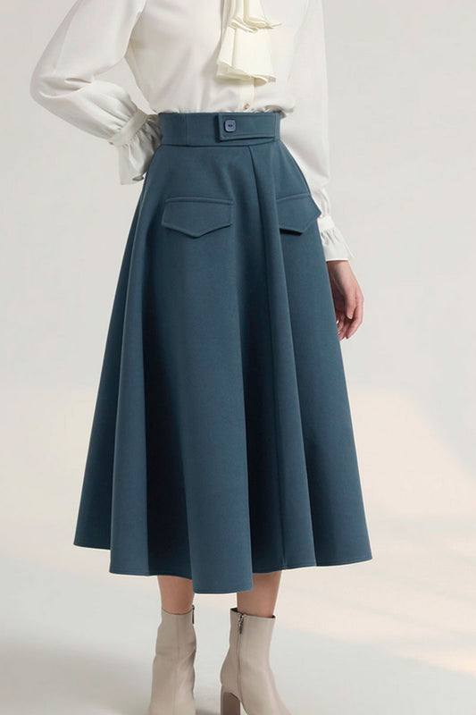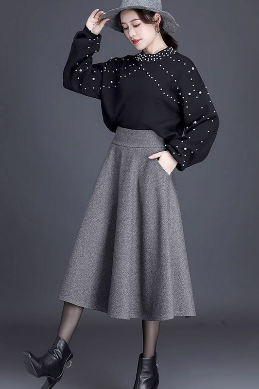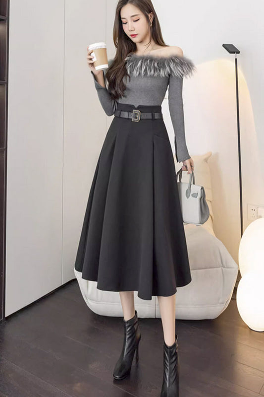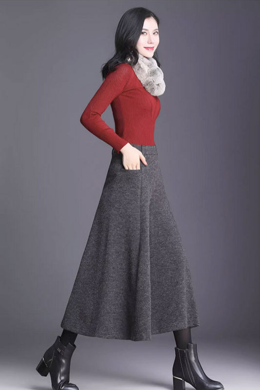 gray a line skirt with wide waist band, winter wool skirt C3428