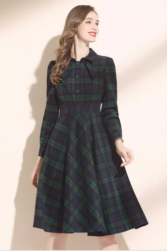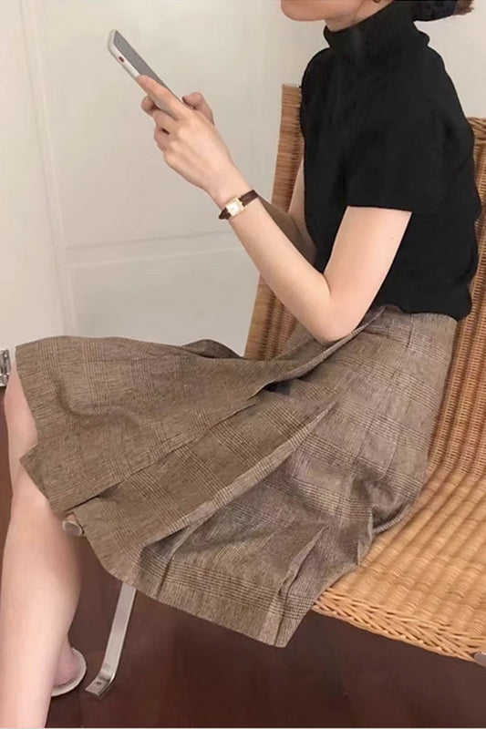plaid wool skirt, short pleated winter wrap skirt women C3430