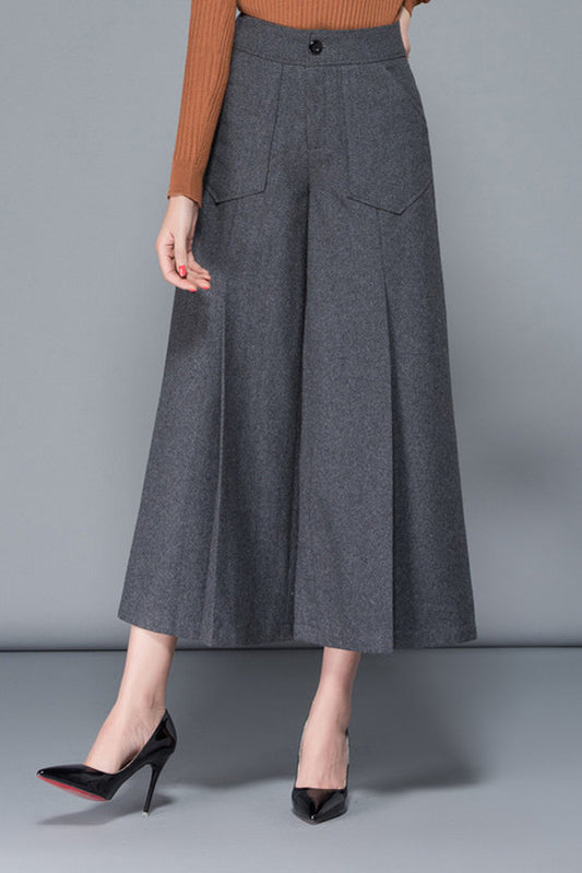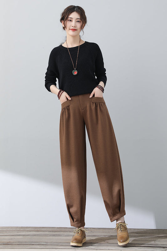 Long Brown Women Wool Pants C3022,Size 160-US2 #CK2202327