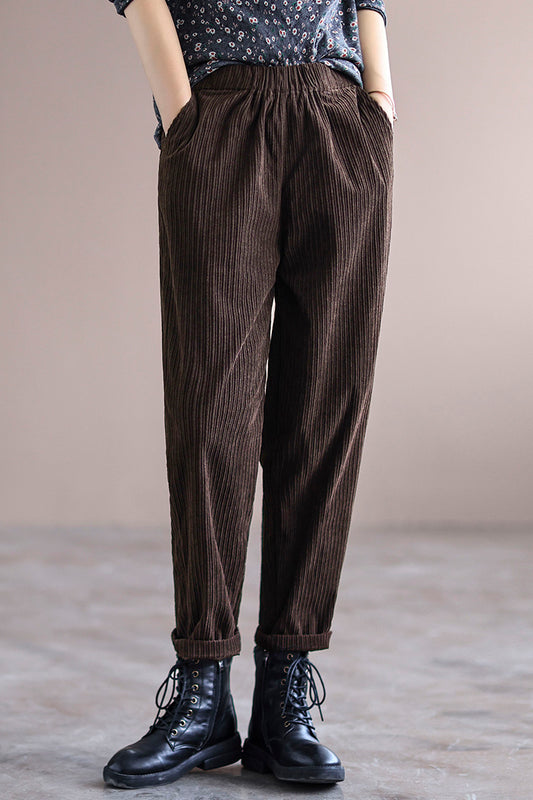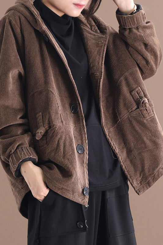 Coffee Hooded Winter Warm Corduroy Coats C2983