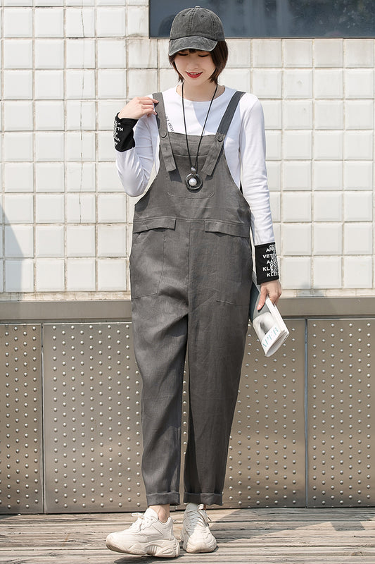 Loose Women Gray Linen Overalls C2751#CK2200727