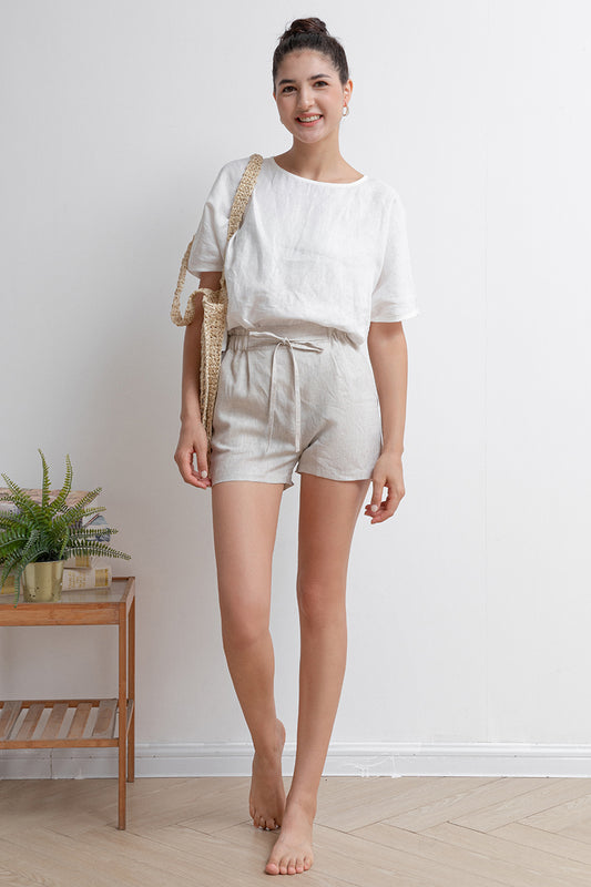 White Women Summer Linen Shorts C1393, Size M #CK2200485