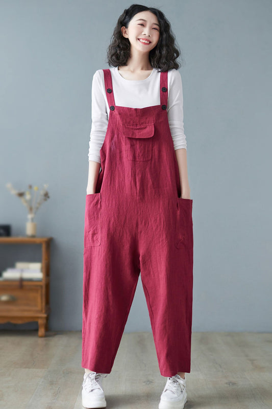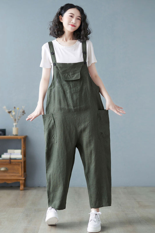 Spring Summer Casual Loose Cropped Linen Overalls C2721