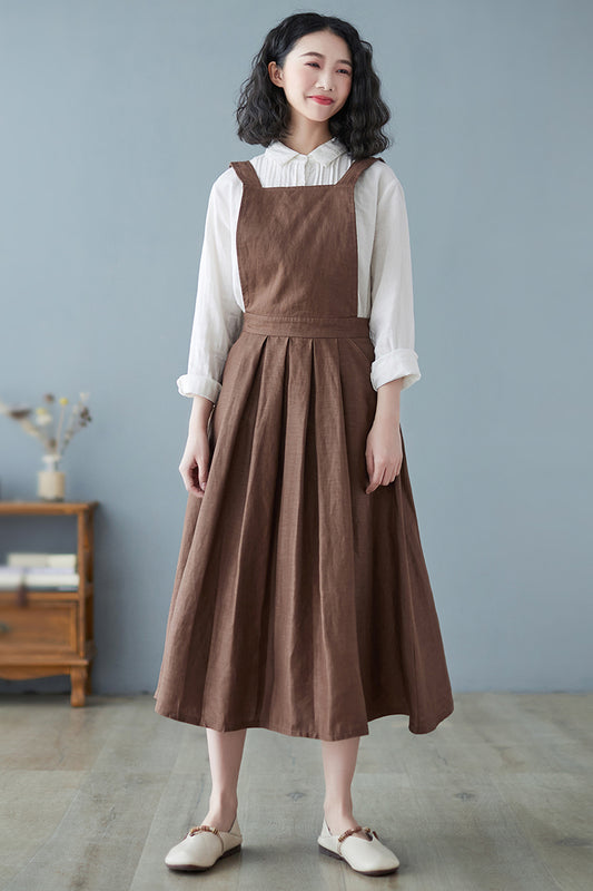 Overall Women Summer Pinafore Linen A line Dress C2724