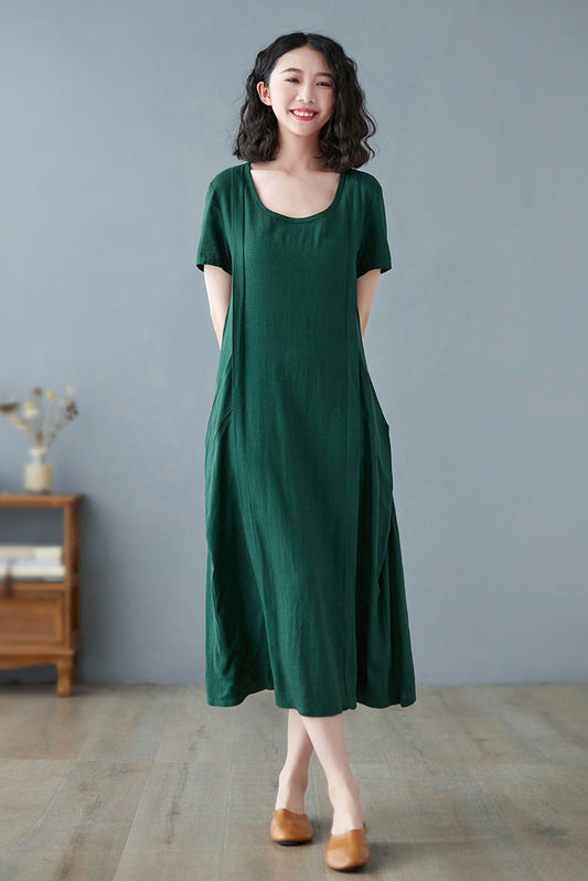 Green Linen Plus Size Maxi Short Sleeve Dress C2729, Size XS #CK2200228