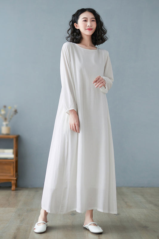 Women Long Sleeve Oversized Linen Loose Maxi Dress C2732#CK2200213