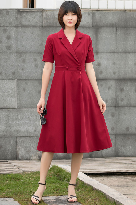 Wine Red French Retro Summer Swing Midi Dress C2795#CK2201441