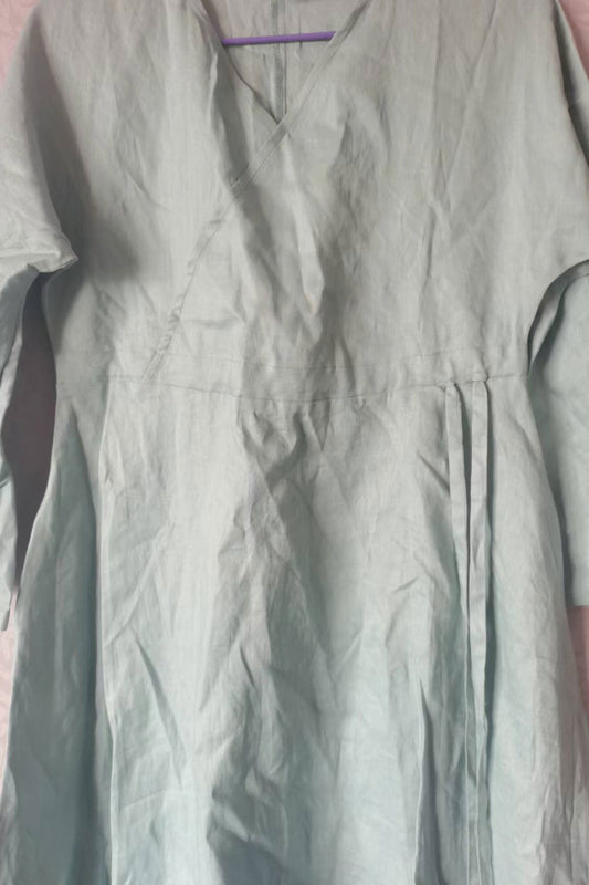 Drawstring Waist Long Sleeve Linen Dress C2911#CK