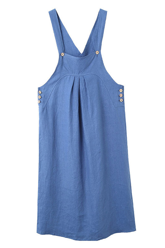 Spring Summer Women Blue Linen Suspender Midi Dress C2904