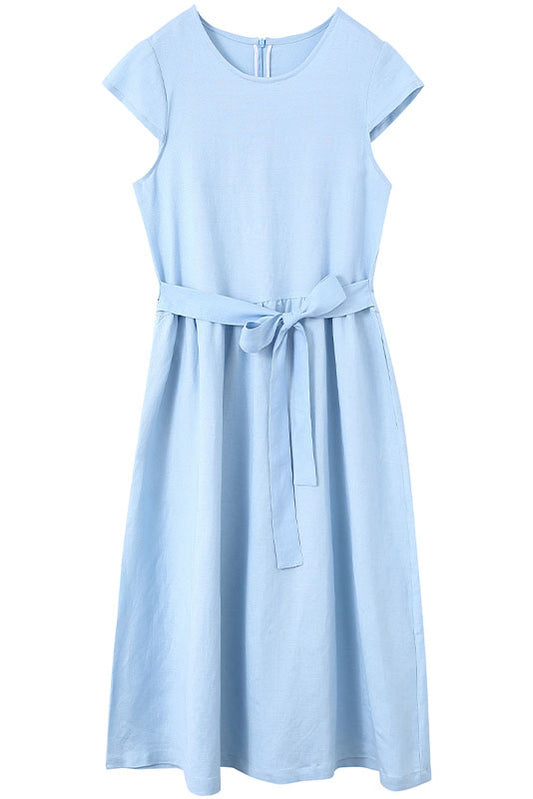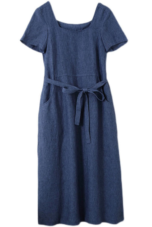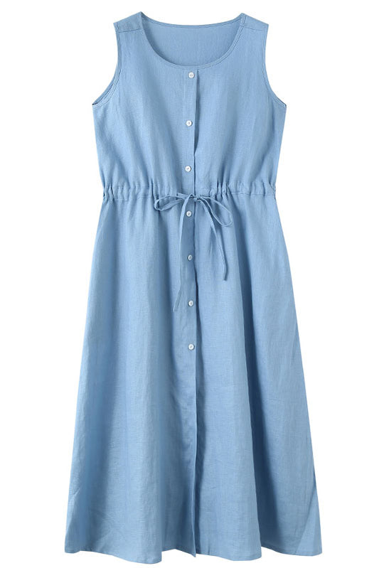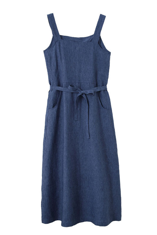 Women Dark Blue Summer Sleeveless Midi Linen Dress C2903
