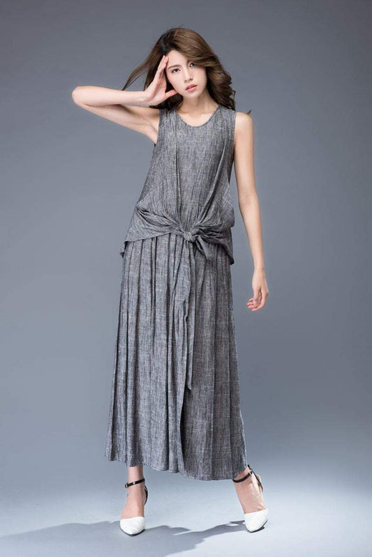linen dress, gray dress, maxi dress, womens dresses, dress, long dress for women, sleeveless dress, linen dress woman, gray dressy tops C934