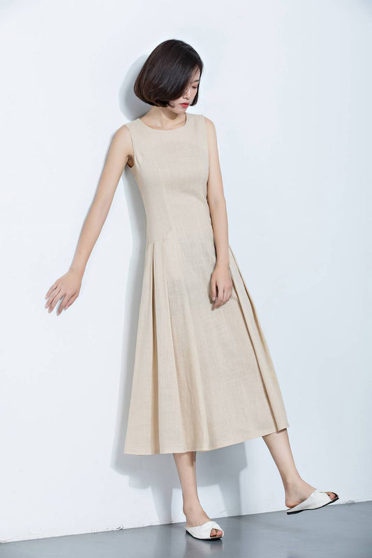 Linen dress, midi dress, Beige Linen Dress, summer dress, Sleeveless Dress, long linen dress, linen womens clothes, women dress C1139