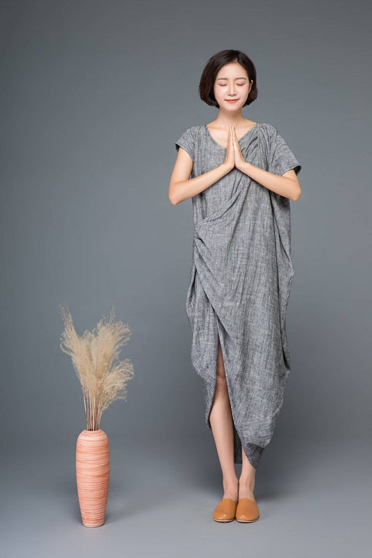 Linen dress, maxi dress, gray dress, asymmetrical dress, summer linen dress, summer dress, womens dress, loose dress, custom dress C1147