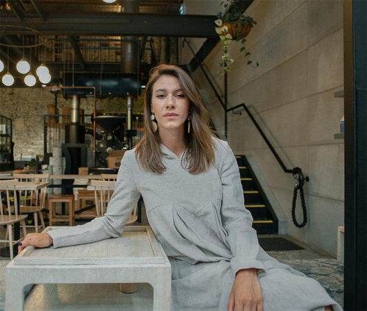 Gray linen womens dress, linen midi dress with pockets, womens linen dress with hat, pleated linen dress C1379