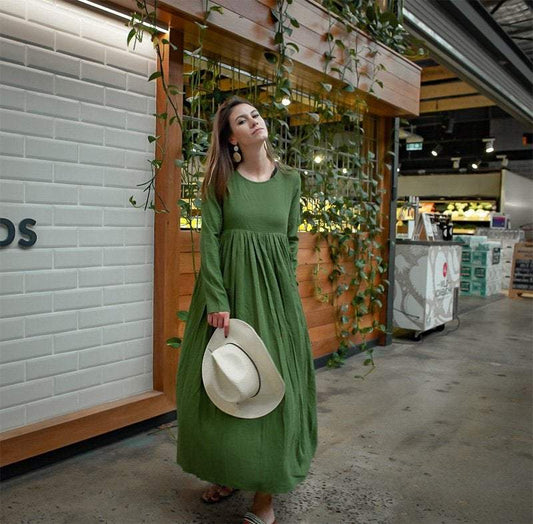 Long sleeve high waist maxi linen dress C1383