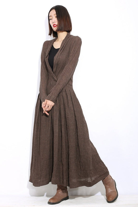 Linen dress, maxi dress, causal dress, womens dresses, dress, long dress, brown dress, linen dress for you women, linen dress pleat C304