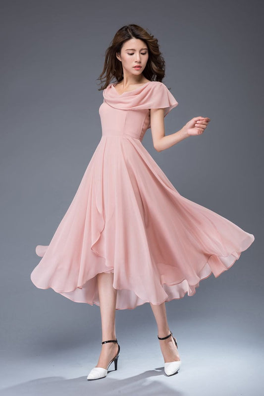 bridesmaid dress, chiffon dress, pink dress, midi dress, womens dresses, prom dress, fit and flare dress, wedding dress, evening dress C943