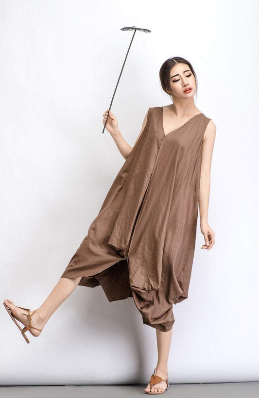 Brown Linen dress, long linen dress, midi Dress, linen dress, sleeveless dress, womens dresses, asymmetrical dress, summer dress (C488)