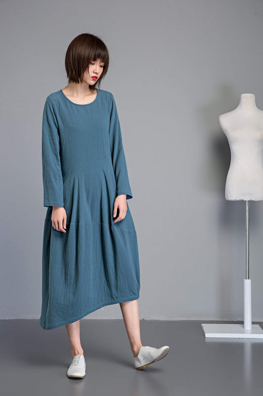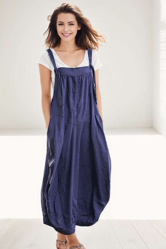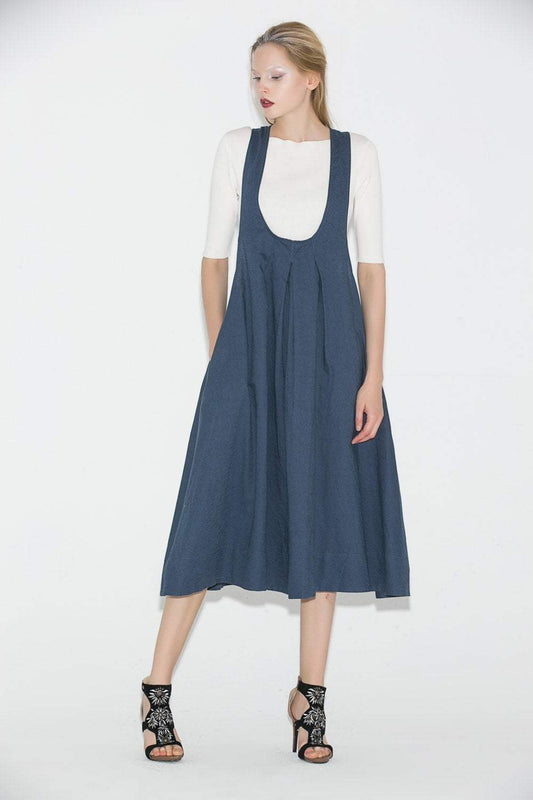 Pinafore Dress, womens dress, linen dress, blue dress, summer dress, loose dress, casual dress, maternity dress, midi dress C693