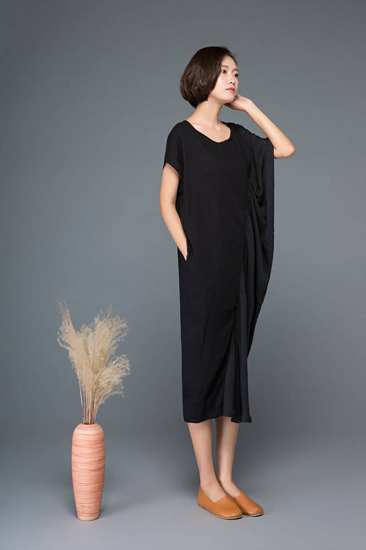 Black linen dress, linen dress, black dress, linen dresses for women, pocket dress, midi dress, summer dress, pluse size dress C1148