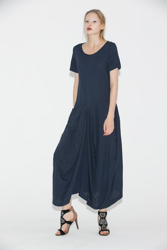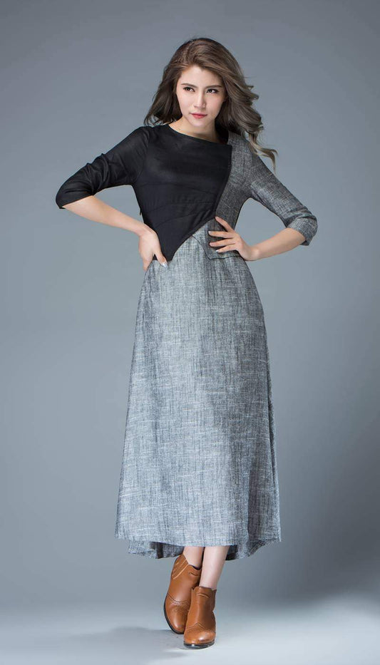 Linen Dress, black dress, gray dress, maxi dress, long dress, womens dresses, dress, vintage dress, designer dress, black linen dress C805