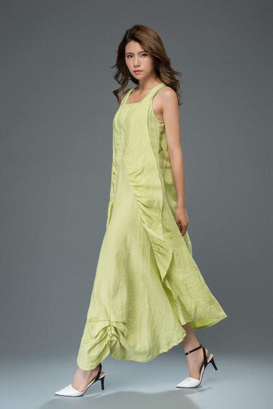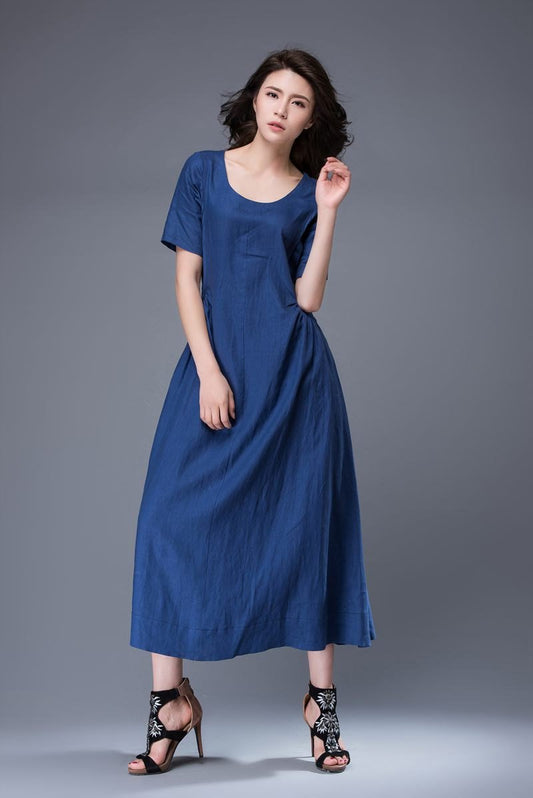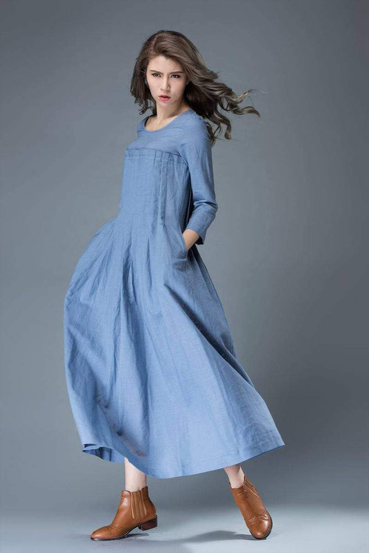 Linen dress for women, Maxi dress pockets, linen dress, long linen dress, womens dresses, loose linen dress, pleated dress, blue dress C811