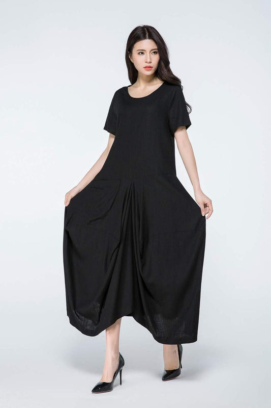 Linen dress, long linen dress, linen dress maxi, summer dress, linen dress women, black linen dress, casual dresses, oversized dress C1060