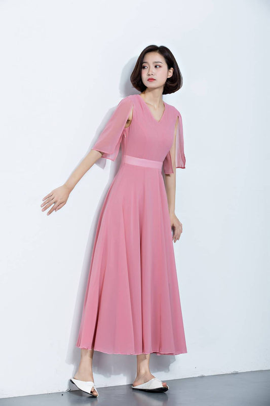 summer chiffon high waist elegant long bridesmaid dress C1143
