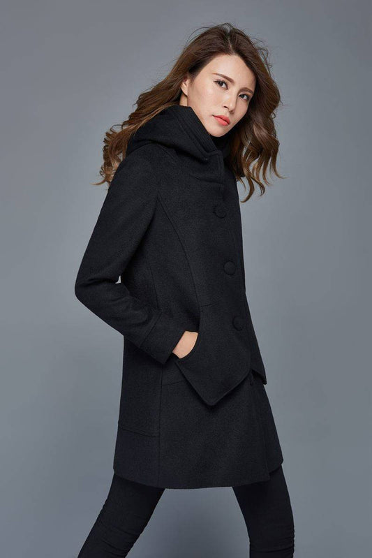 Wool coat, black coat, womens jacket, winter coat, coat, jacket, midi coat, hooded coat, womens jacket, mini jacket C978