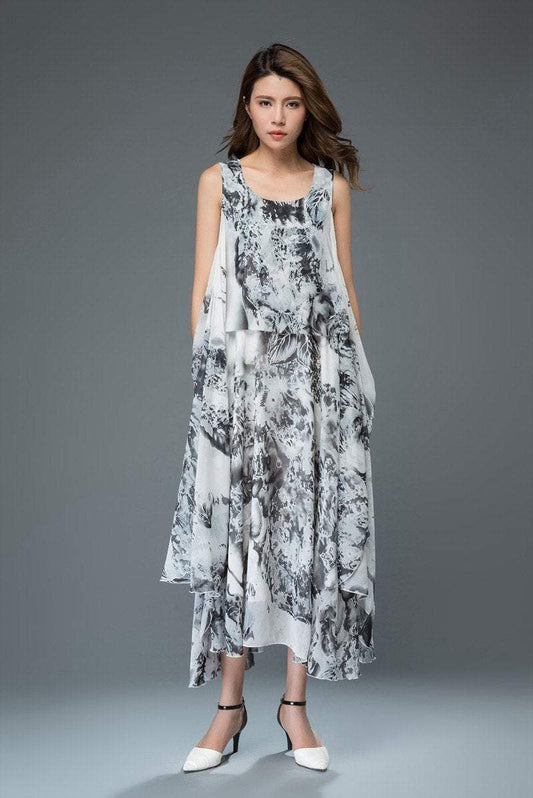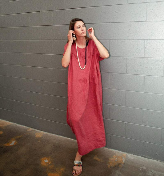 Rose linen womens dress, plus size linen dress, long linen dress, womens casual linen dress, dress with pockets C1377