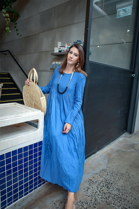 Blue long linen dress, linen womens dress, womens casual linen dress, maxi dress with pockets, plus size linen dress C1378