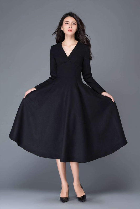 black pleated skirt ,A line skirt-black wool skirt, classic winter skirt-midi length skirt for elegant womens, vintage plus size skirt C1294