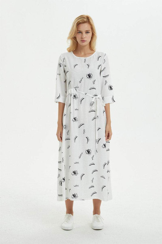 white print dress, maxi dress for women-wrap linen dress with drawstring-dress with pockets, summer linen dress for women, gift for herC1281