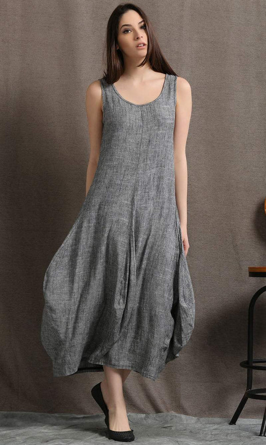 Gray Maxi Dress - Linen Sleeveless Long Marl Grey Summer Dress with Tulip Shaped Skirt Handmade Plus Size Dress C417