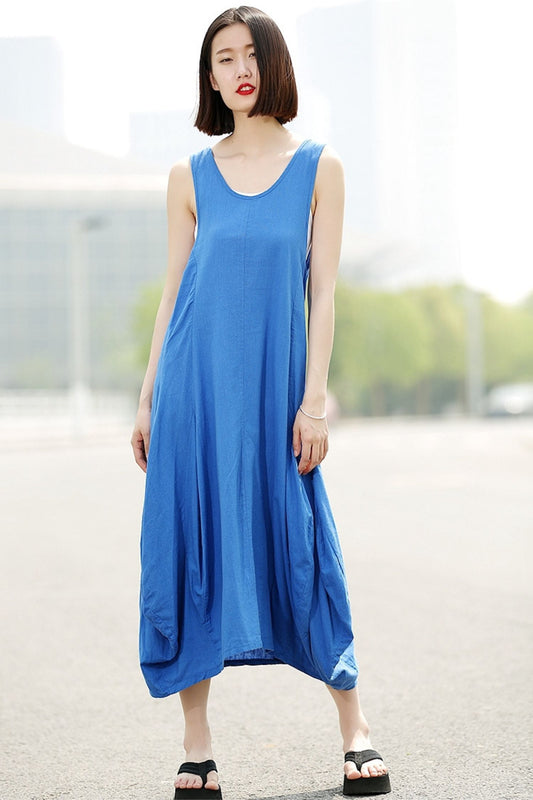 Linen long vest sleeveless dress C355