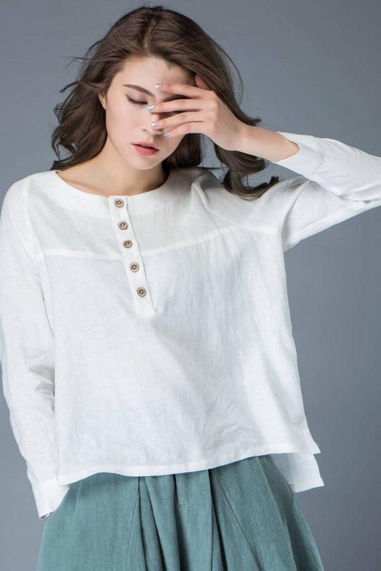 White linen causal womens long sleeves blouse C834