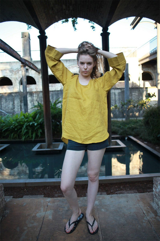 yellow linen blouse, Oversized linen blouse, linen blouse, womens linen blouse, summer linen blouse C1504