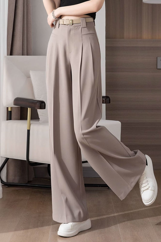 Khaki Wide Leg Long Pant with Pockets C3505